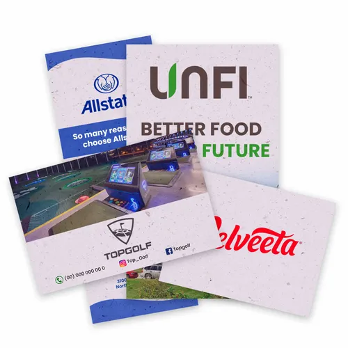 Flat, uncoated Seed Paper Panel Cards made from 100% seed paper. Ideal for invitations, menus, inserts, handouts, and eco-minded direct mail. They deliver your message and a sustainability story—recipients can plant the card to grow flowers.
