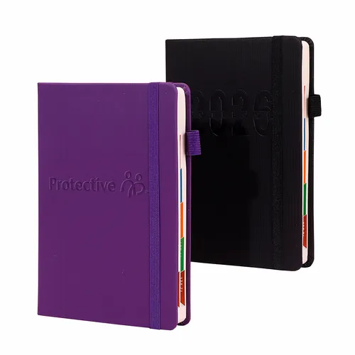 A stylish, durable planner with a convenient strap closure, perfect for organizing notes, schedules, and ideas on the go.Size: 5.8 in x 8.3 inCover: Color-changing PUPages: 200 sheets / 400 pages (80g paper)Colors: Green, Blue, Purple, Black, Orange, PinkWeight: 515gCustomization: UV printing, foil printing, debossingImprint Area: 100 mm x 100 mmIdeal for professionals and students who want both style and functionality in one planner.